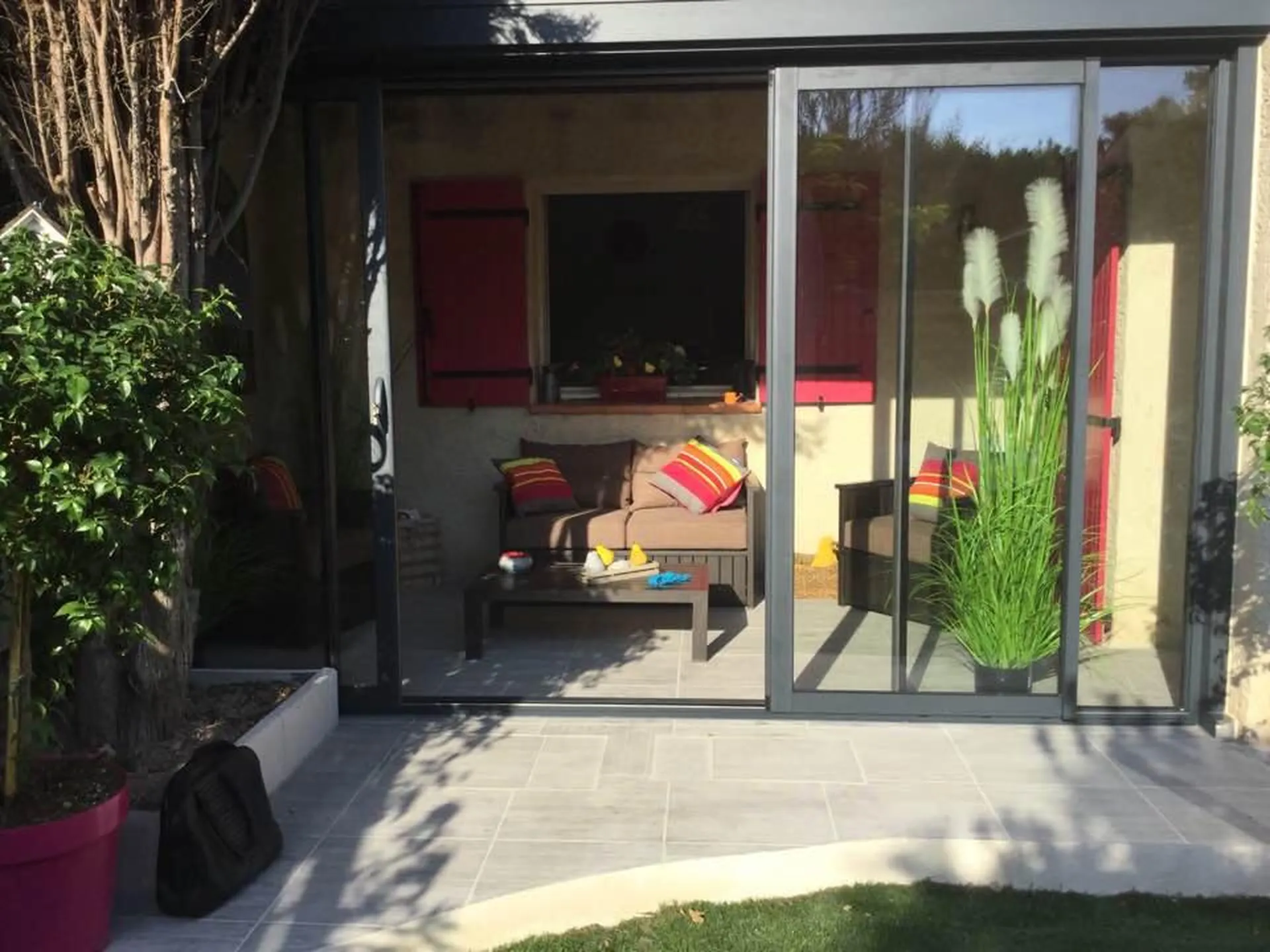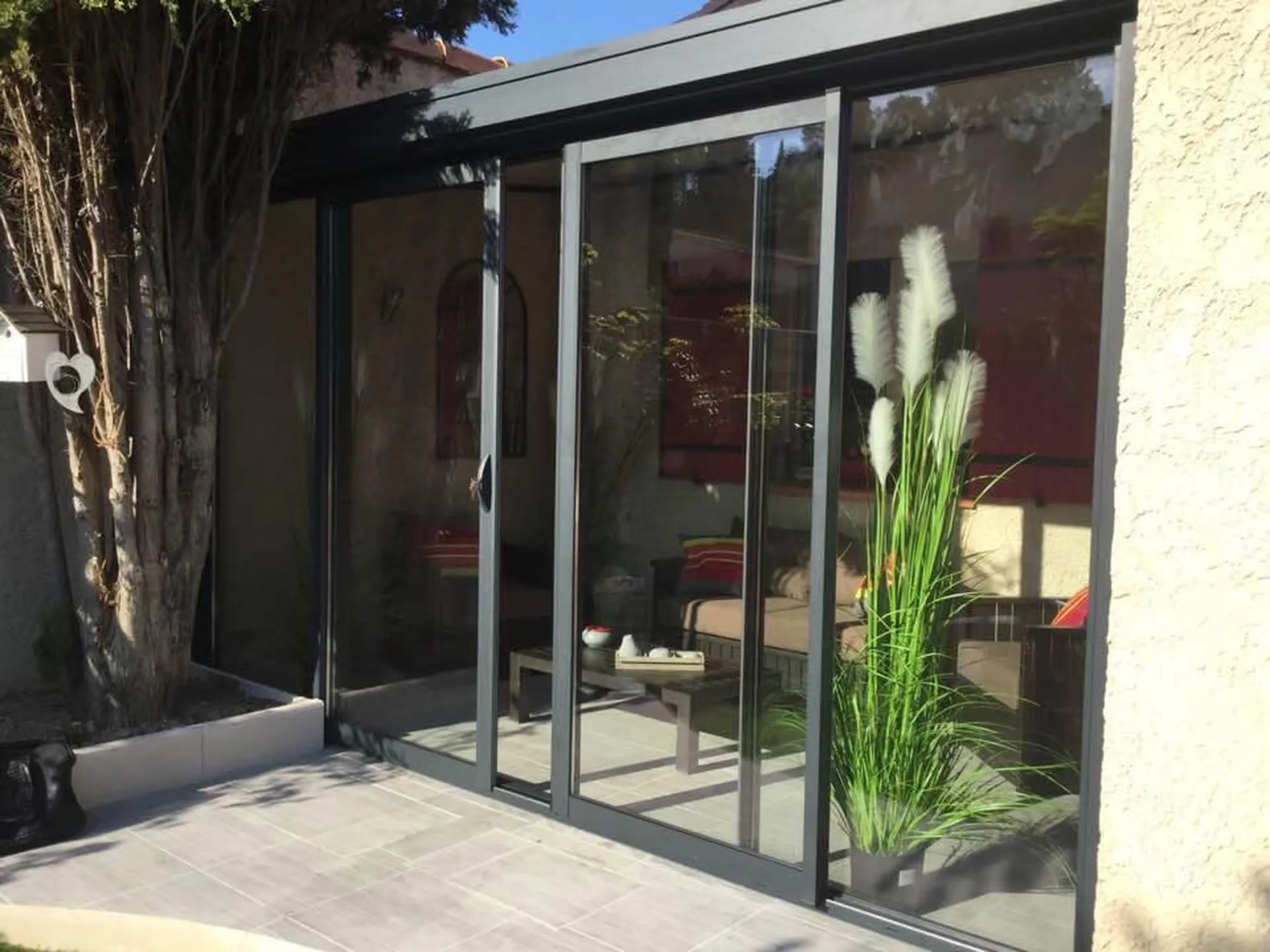 SMA a mis en place d'une Véranda Sépalumic avec un toit en pente sur Martigues.