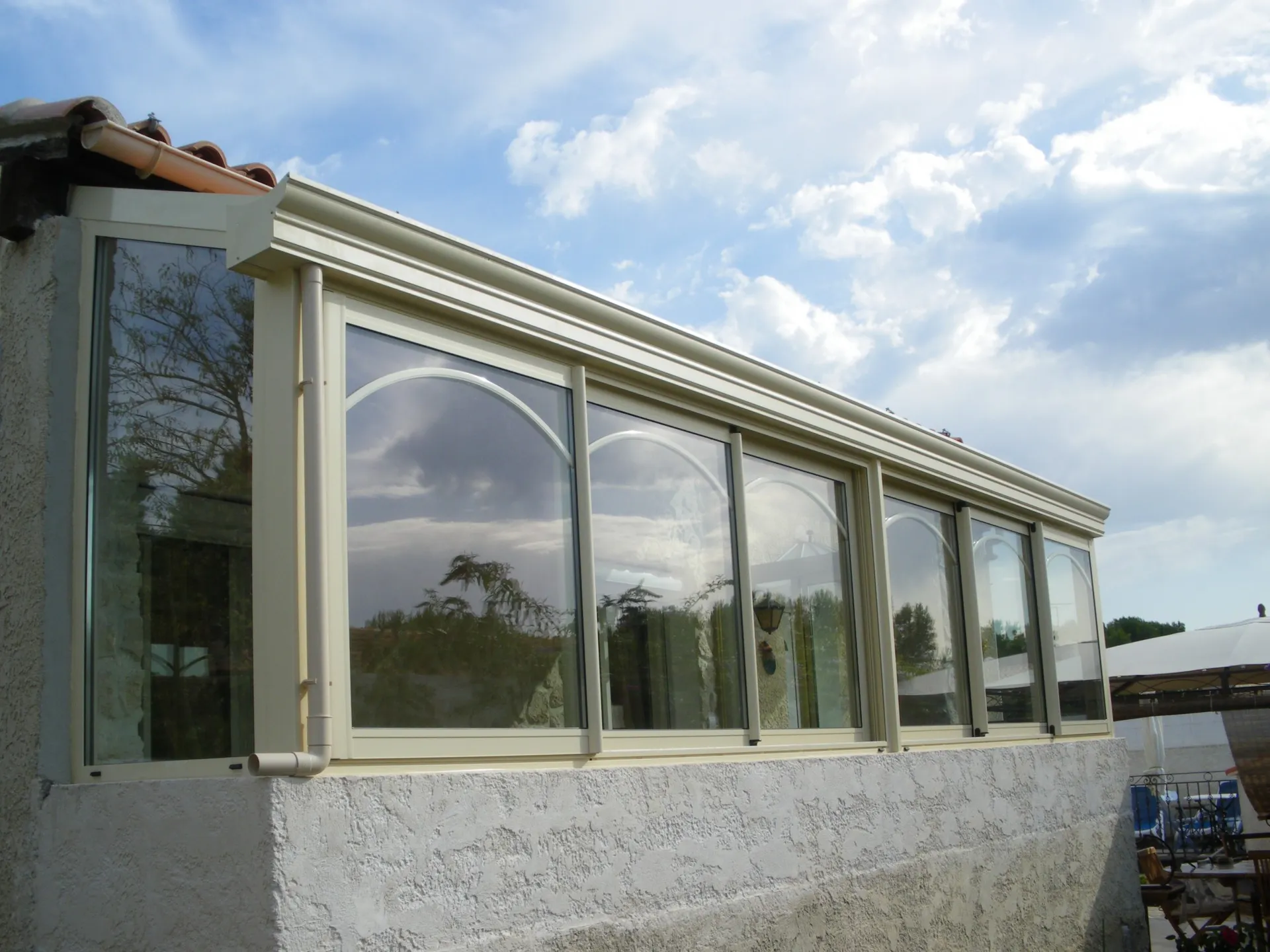 SMA Martigues a confectionner encore une fois une véranda avec toiture isolante sur Port de Bouc, une véranda sur mesure haut de gamme de la marque Sépalumic, vitrage Cekal, avec des plaques isolantes de 57 mm de chez Akraplast, ainsi que des serrures 3 points.